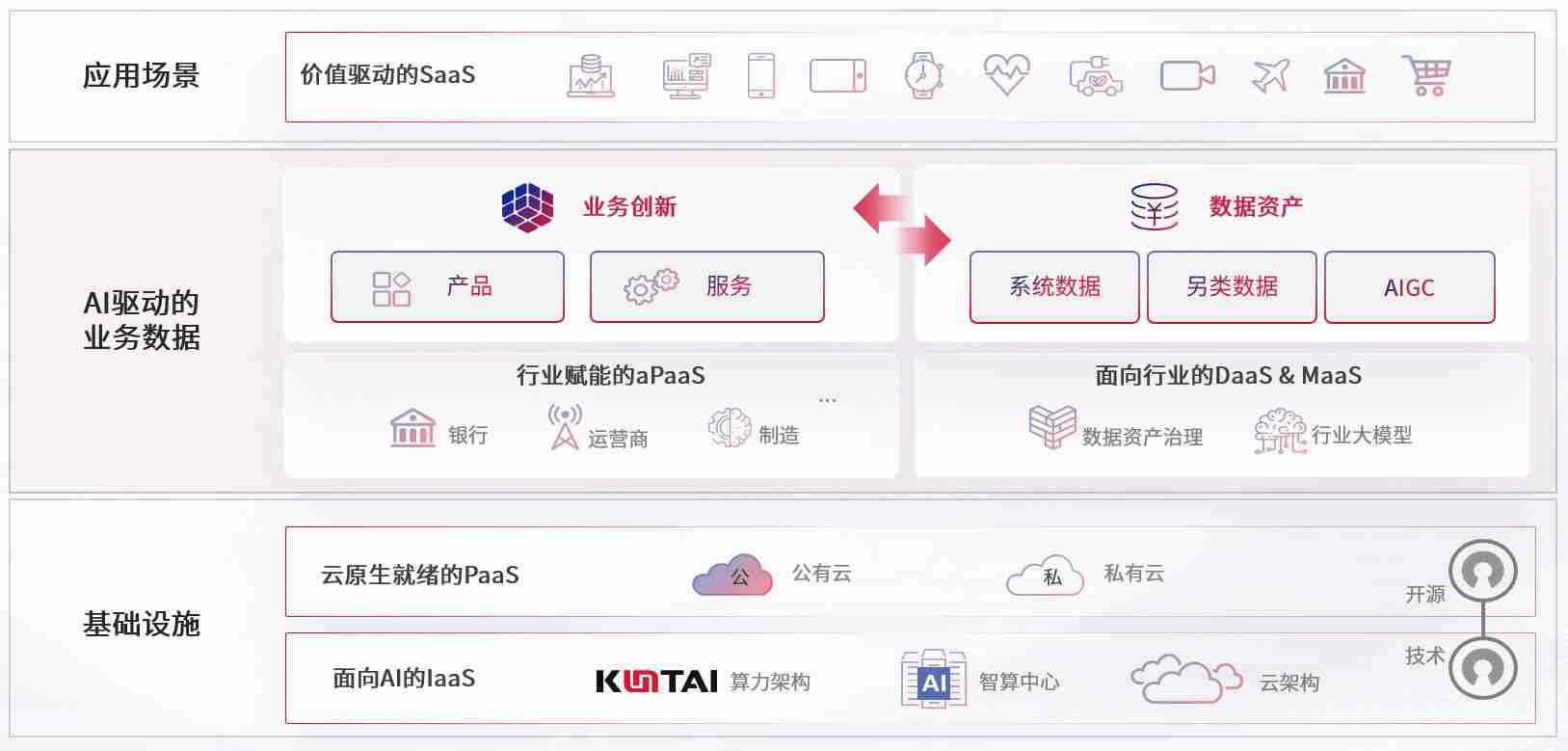 数字时代,,围绕企业数字化转型的关键要素,,,z6尊龙数码开创性的提出数云融合战略和技术体系框架,,着力在云原生、、、数字原生、、、、AI原生和信创产业上架构产品和服务能力,,,,为处在不同数字化转型阶段的快消零售、、、汽车、、、金融、、、、医疗、、政企、、教育、、运营商等行业客户提供泛在的敏捷IT能力和融合的数据驱动能力,,,构建跨界融合创新的数字业务场景和新业务模式,,,助力企业级客户建立面向未来的核心能力和竞争优势,,,,全面推动社会的数字化、、智能化转型升级。。。。